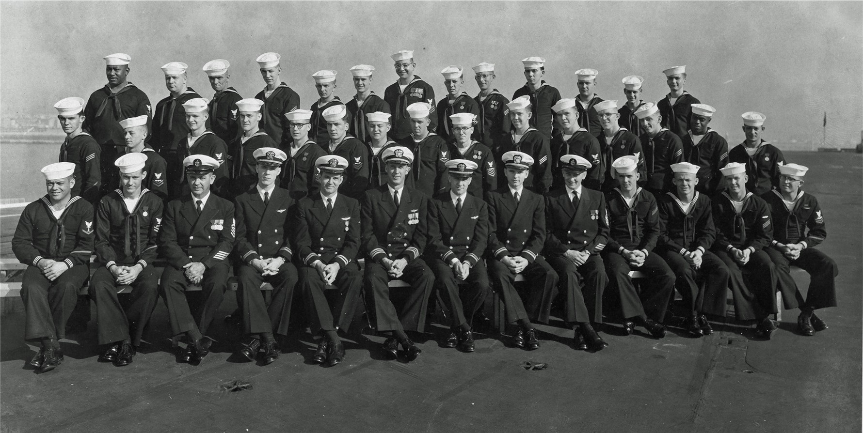 Ken Horton, Dewey Ward, Chief C.C. Falls, LTJG B.C. Lee, LT B.A. Clark, LCDR J.C. Barrow (O-in-C), LTJG J.F. Jakubczak, LTJG R.A. Huttig, Chief R.D. Goetz, John Fessenden, Gary Philbert, Vincent Blake, Spencer Wood