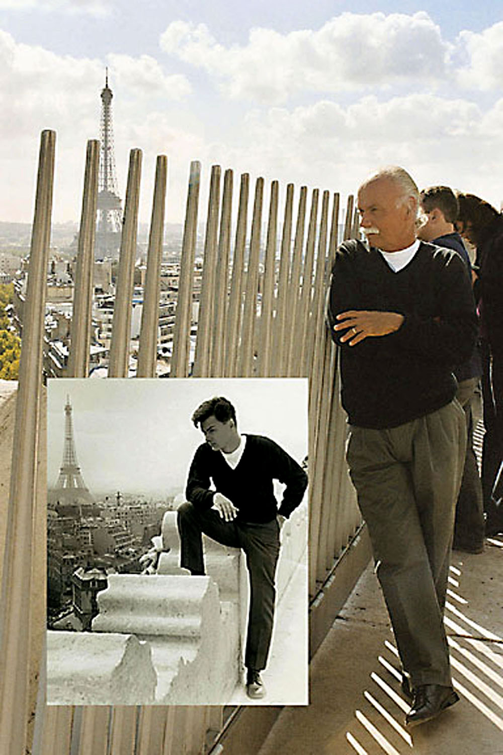 The story behind the picture: "One of the last things I said on my Guest Log page 5, was that I have been back to many of the ports of call. My facebook page cover shot shows me on the Arc of Triumph in Paris. The inset shot was taken by Don Jusko while on liberty during our cruise (1964). When I went back I wanted to match that shot, clothes and all. After climbing 16 stories and coming out on top... I saw the fence. It seems that people were jumping off the Arc. Enough to warrant the fence. I did the best I could do. I did put my hand on the spot that my right foot was on. My "Before & After" photo still works."--Larry Plourde