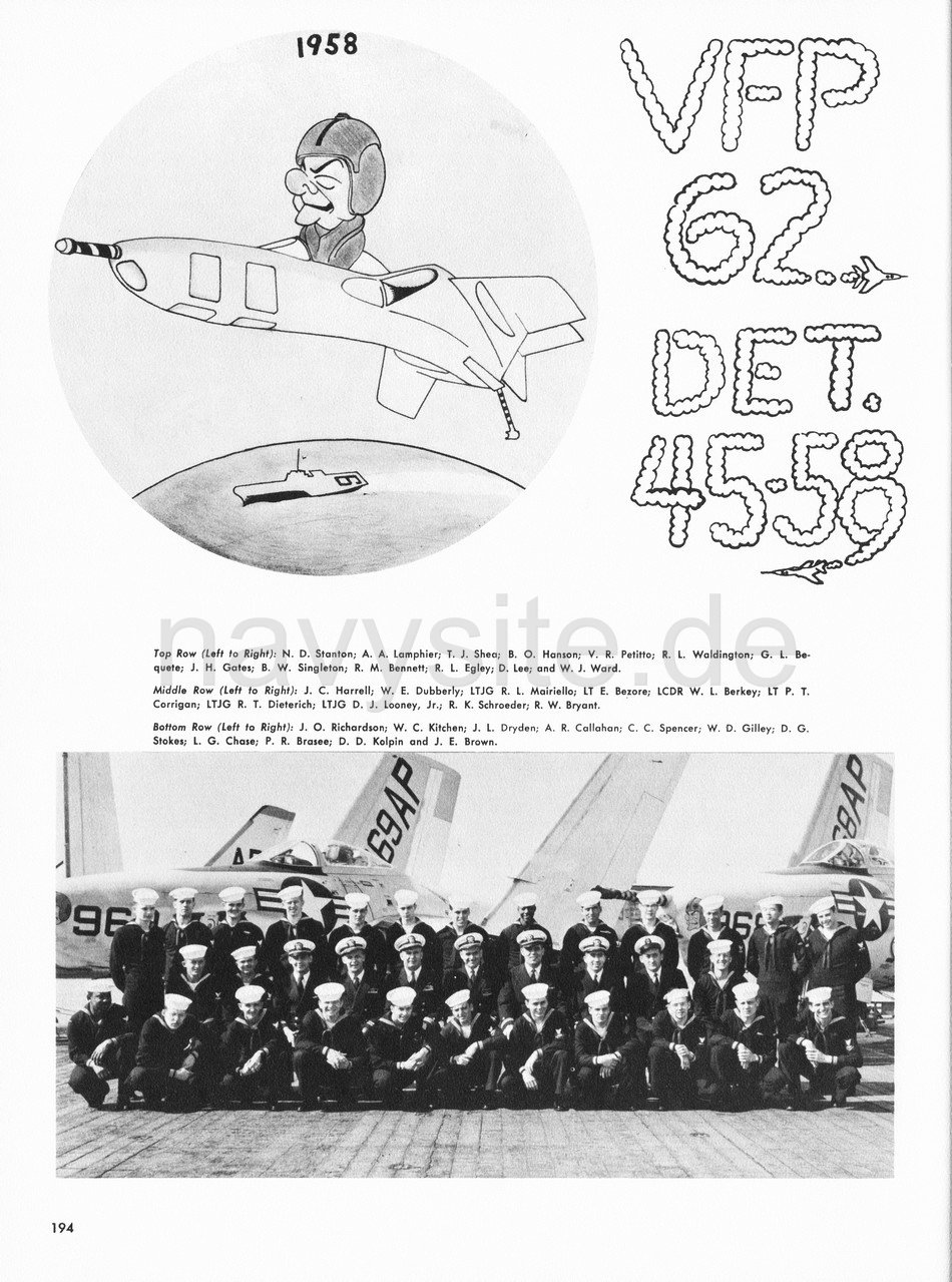 Preface by Webmaster: LTJG Richard L. "Deke" Dieterich was flying a VFP-62 (USS Essex) mission over a Lebanese valley [July 19,1958] taking photos of gun inplacements. He was killed when he hit the mountain peak coming out of the valley. The Marines retrieved his body. See his memorial at "In Memoriam" this site.