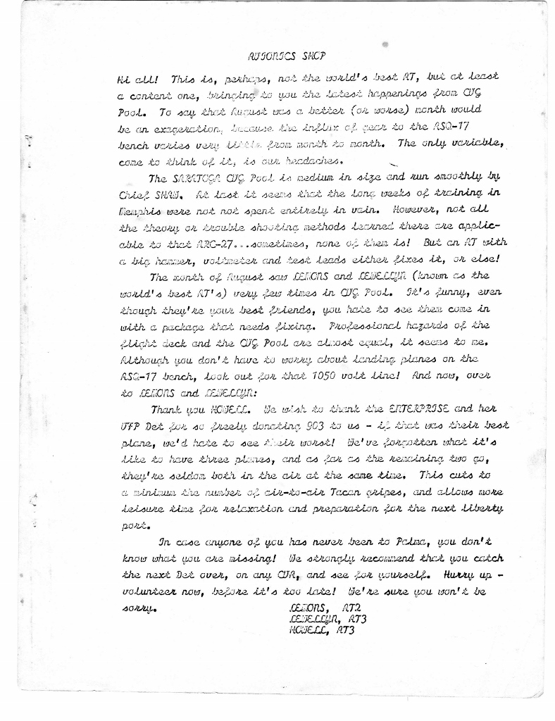 August 1963 Newsletter USS Saratoga Det 60 PAGES 15-17