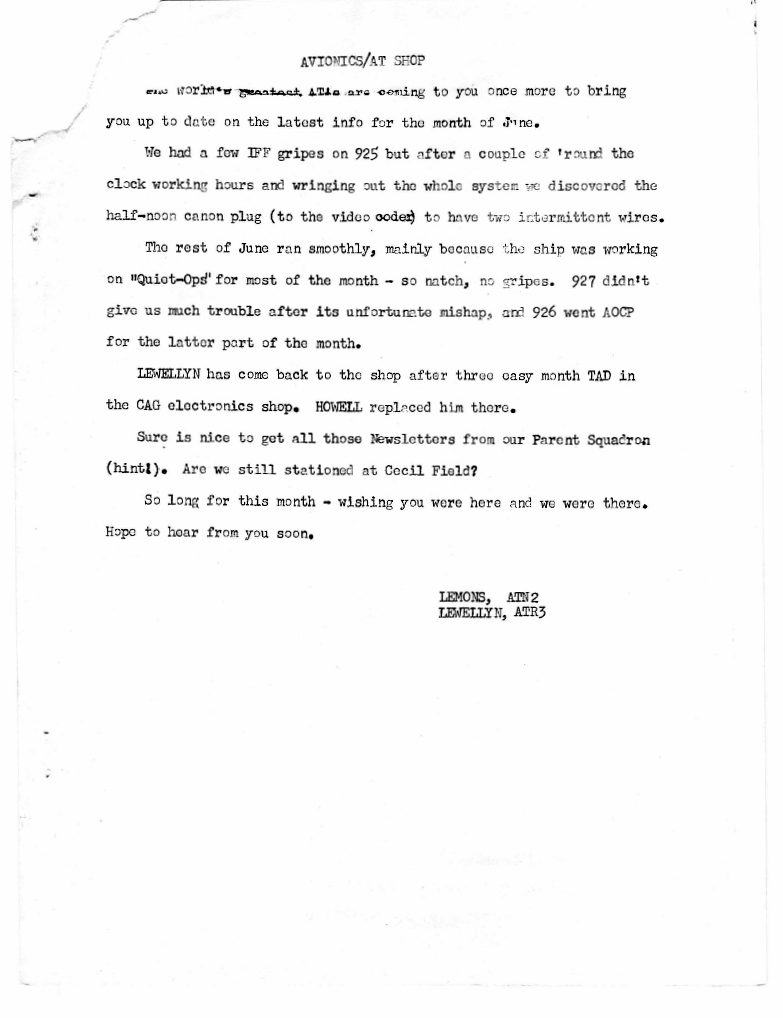 We invite you to click this link - VFP-62 Webmaster to email a question, comment, correction, or contribution to this page.