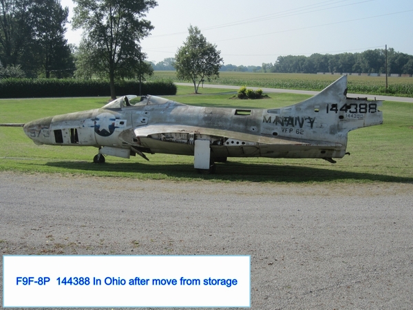 I recently saw the photos of my F9F-8P Cougar on your website. I just bought the plane in Ohio and transported it to Santa Rosa, CA. My intentions are to either restore the plane myself or provide it to someone who will restore it. The bu. no. is 144388 and it was in VFP-62 in 1959. I would love to hear from anyone that flew it of worked on it.