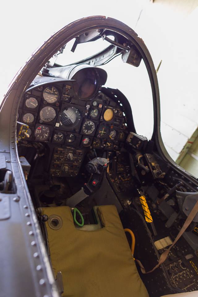 RF-8 cockpit simulator. Note the photo viewfinder at top and camera control station in front of stick.
