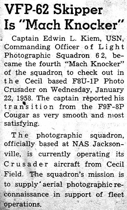 Capt. Edwin (Ed) L. Kiem VFP-62 Skipper 1957-1958
