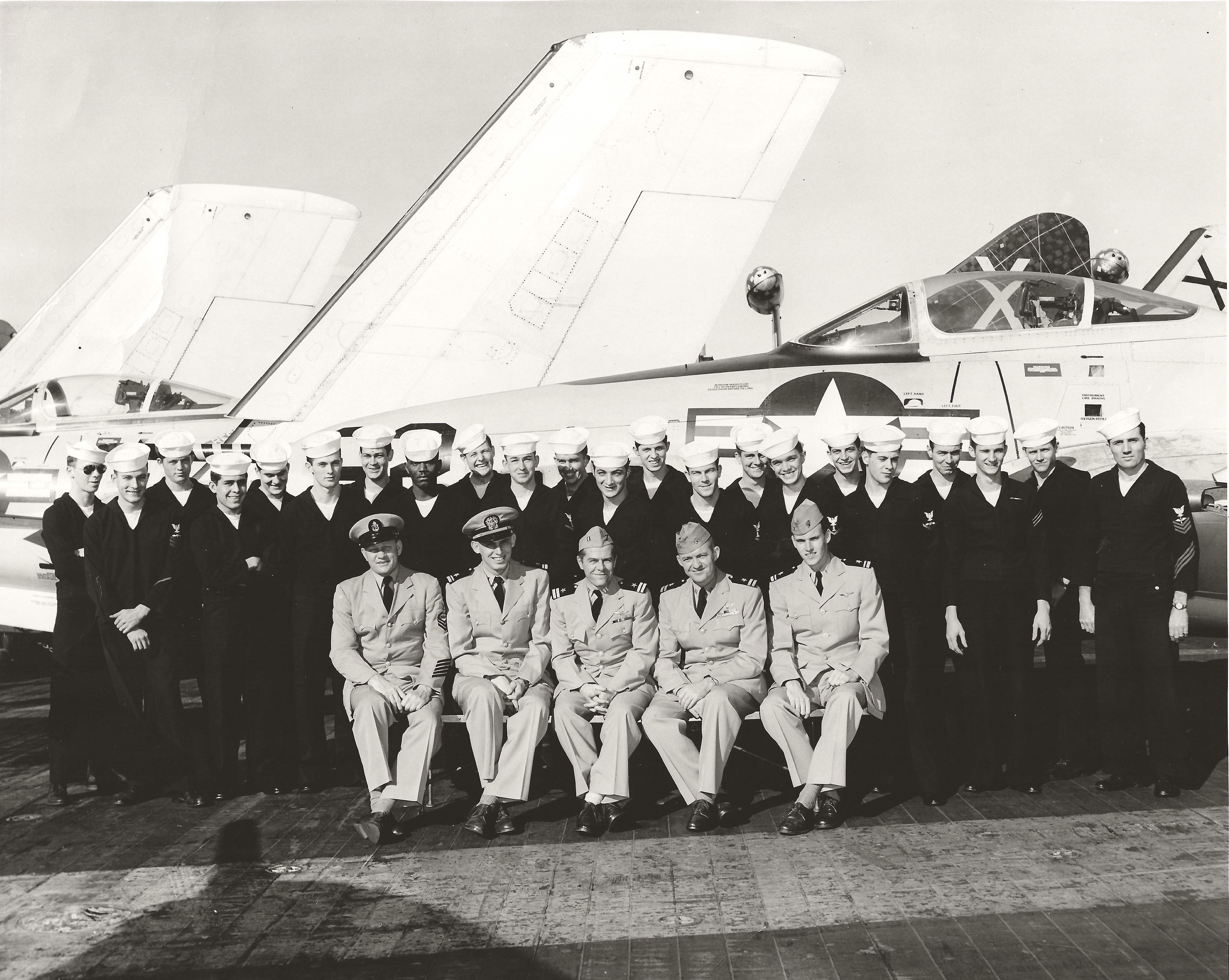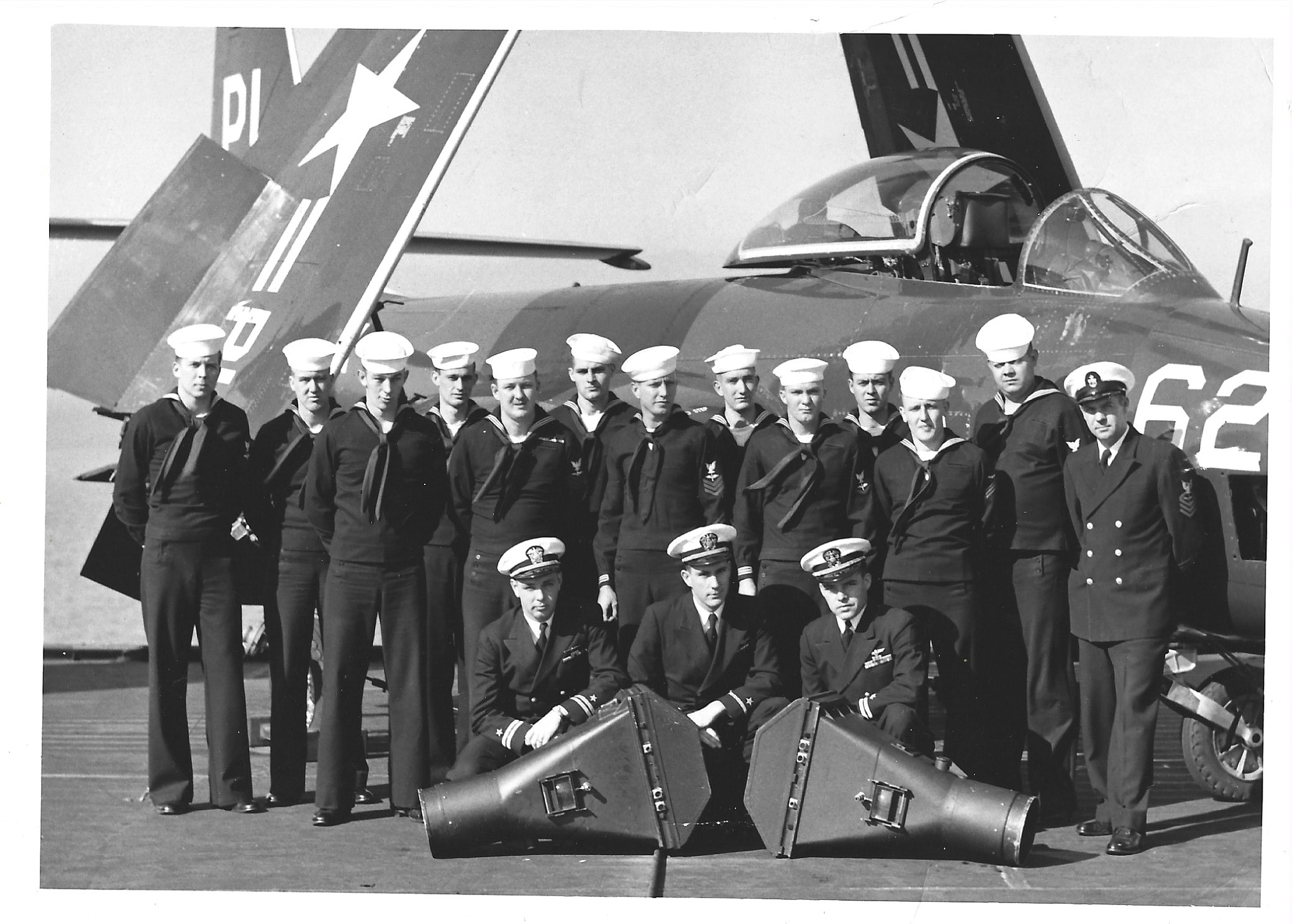 VFP-62 crew and F9F-8P on USS Saratoga (1956) Photo: Robert Stiles PH2 via Barry Stiles (son) Click photo to enlarge
