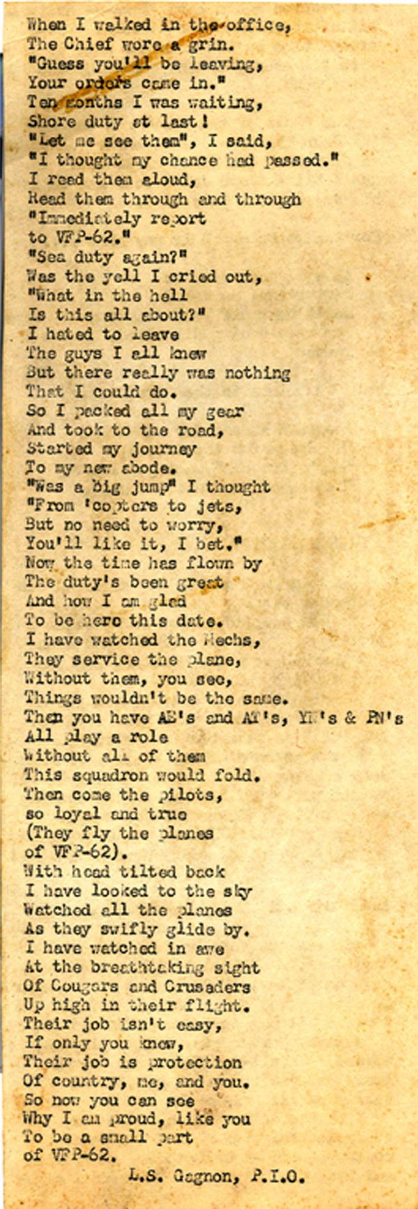 Poem to VFP-62 ---CAN BE ENLARGED IN BROWSER WINDOW-- submitted: Capt. Bob Kiem son of VFP-62 CO (1958)Capt Ed Kiem