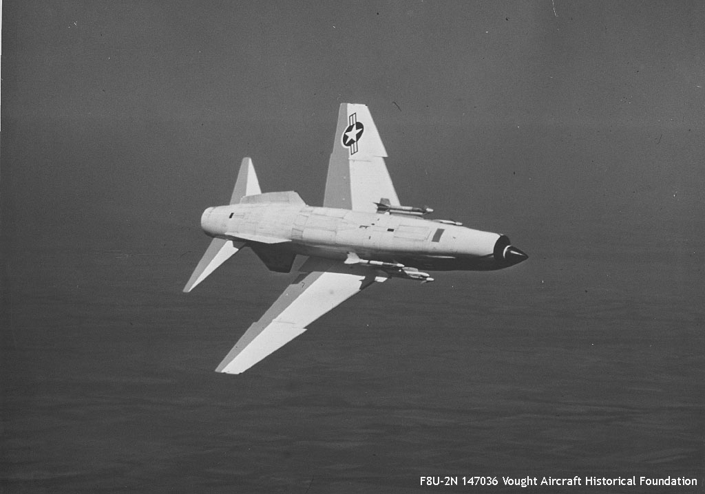 O.K. Not an RF-8 but a beautiful and unusual shot: F8U-2N (F-8D) on a test flight over North Texas. Photo: Vought Aircraft Historical Foundation -- Contributed by J.J. McKenna and Bill Spidel