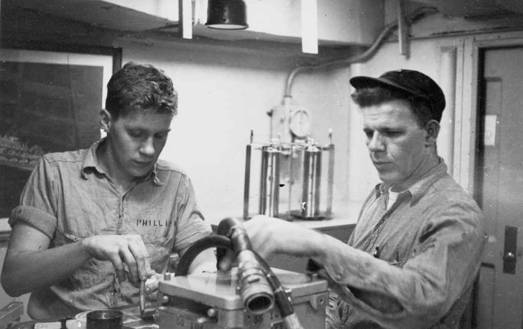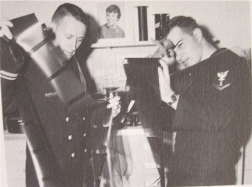 Det 37-59 USS FDR Repairing camera L-R Daryl Phillippi PH3, George Rowe PH1. Photo: Daryl Phillippi |