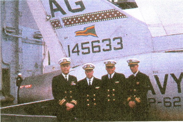Det 62 Independence 1963; L-R LCDR Al Wilhite,LTJG Bob Turner,LTJG Lee Schalon, LT John Dechant. Contributed: Lee Schalon |
