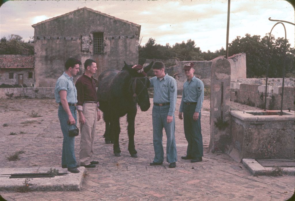 Det-65 L-R, Reimer,I.J AN, Lt Baucom, horse, Cunningham AT2, Newbury AT3. Photo: Jim Trenoskie |