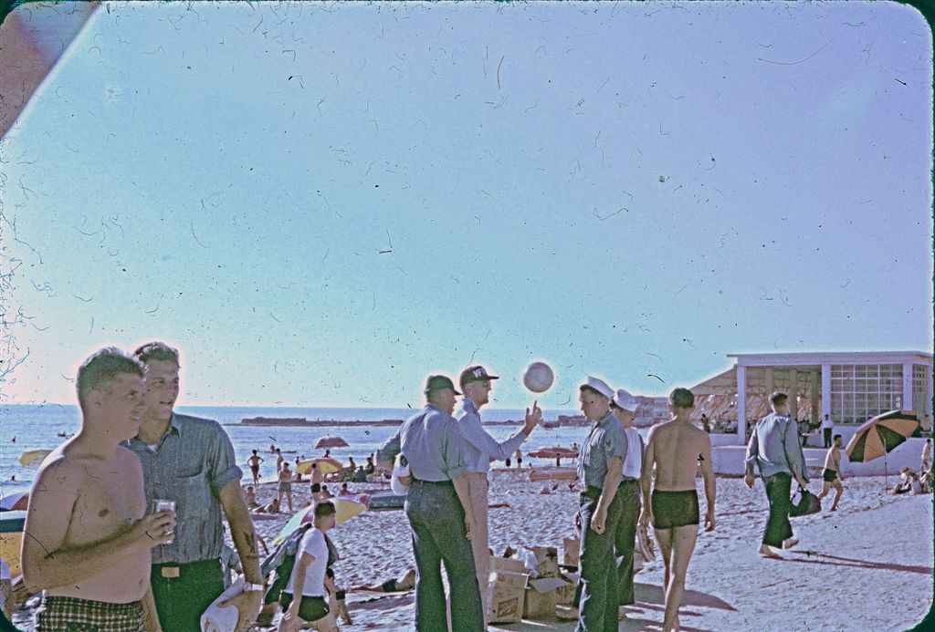 Det 65 Beach Party L-R Geske,JC AN,Maloney,RE AN,?, Ltjg Gaughran, Schwartz,FG ADJ2. Photo: Jim Trenoskie |