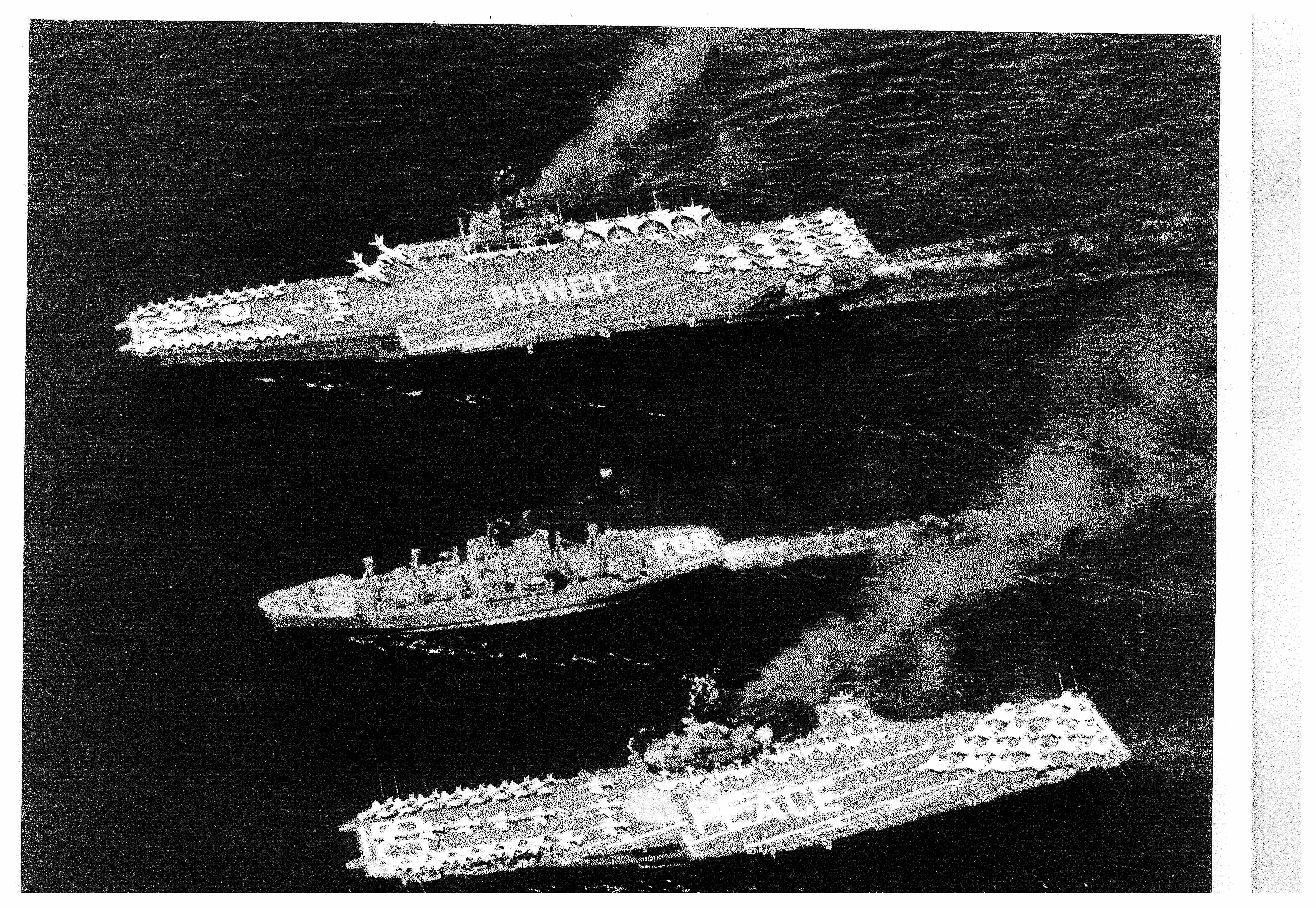 Sea Power demonstration: USS Independence (CVA-62)(top) and USS Shangri La (CVA-38). Photo: Bruce Nason