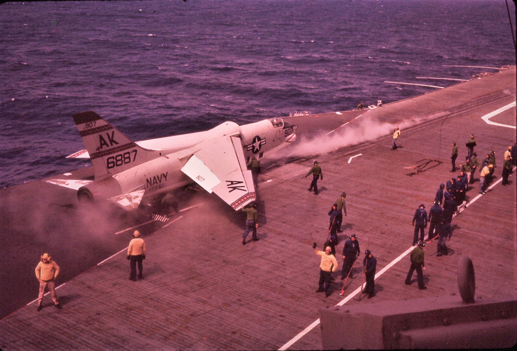 VFP-62 RF-8A bolter (missed landing cables). Note tail hook down.