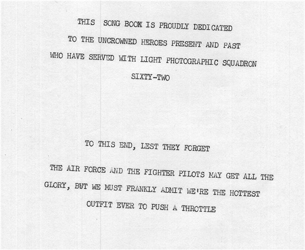 [Webmaster's Note: A copy of VFP-62 Song Book was submitted by Jay Kirkland, son of LT James T. Kirkland Jr. VFP-62 pilot 1958-60]